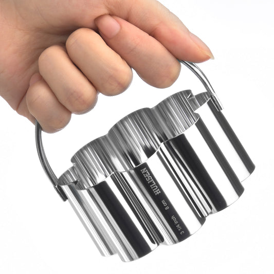 HULISEN Fluted Round Cookie Cutter Set - 5 Pieces, Stainless Steel Biscuit Cutters with Handle