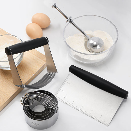 HULISEN Stainless Steel Baking Tool Set - Pastry Scraper & Dough Blender & 5-Piece Biscuit Cutter