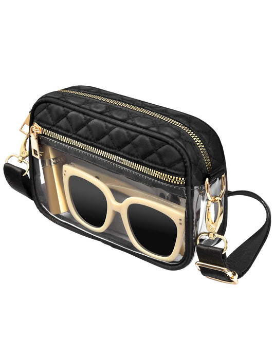 HULISEN Quilted Clear Bag for Stadium Events - with Adjustable Strap & Gold Zipper