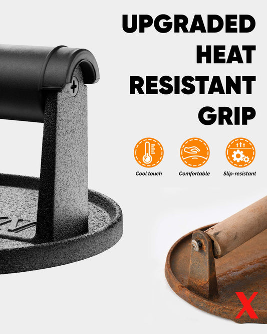 HULISEN 6-Inch / 8.8-Inch Pre-Seasoned Cast Iron Burger Press - Heavy Duty Grill Press with Heat Resistant Handle